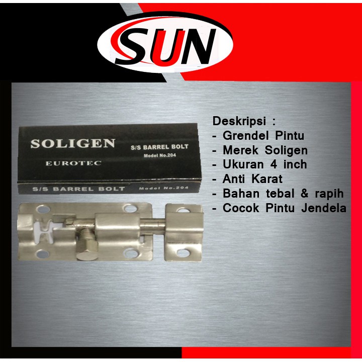 Grendel Soligen memilki kualitas barang yang sangat baik dilihat dari material memilki plat yang lebih tebal dibandingkan dengan yang lain serta didukung finishing yang baik. soligen sendiri sudah memiliki nama didalam produk home hradware yang berkualitas dengan harga yang terjangkau.