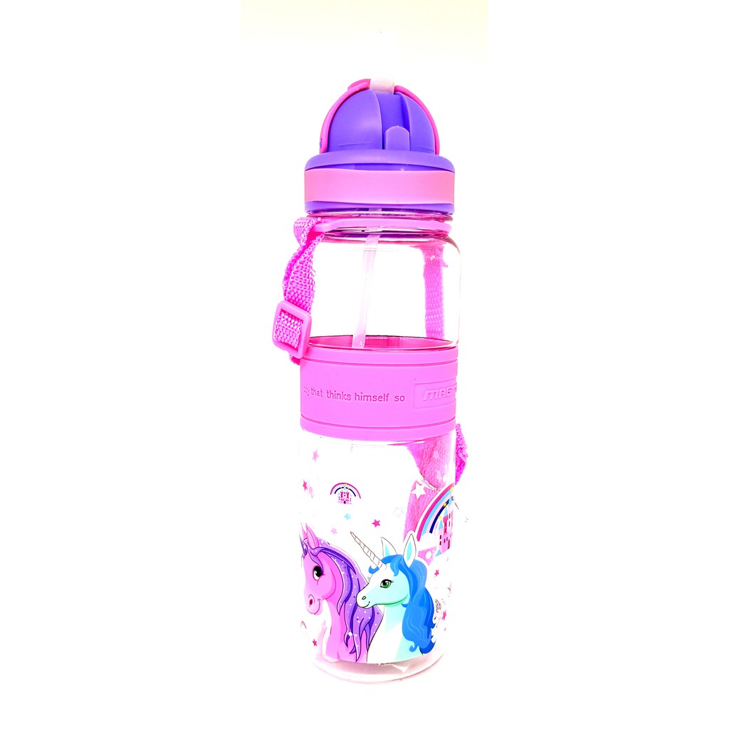 Botol minum anak berbahan plastik, yang memiliki sedotan dengan penutup atas yang hanya di dorong. Dengana tali panjang selempang untuk mempermudah saat membawanya. Pada bagian tengah terdapat karet sehingga tidak licin saat di pegang di botolnya.
