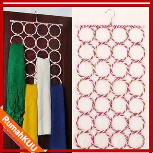 Hanger unik berbentuk bulatan untuk gantung jilbab, syal, ikat pinggang. Bagi anda yang suka koleksi syal / jilbab / ikat pinggang pasti suka repot nyari warna yang hendak dipakai karena jilbab/syal numpuk di lemari, susah nyarinya.