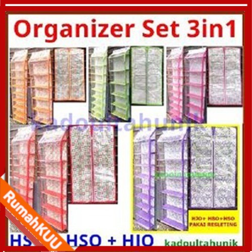 - HBO (ukuran 140 x 40) : 5 tingkat, Gantungan Hanger Tas (PAKAI RESLETING)