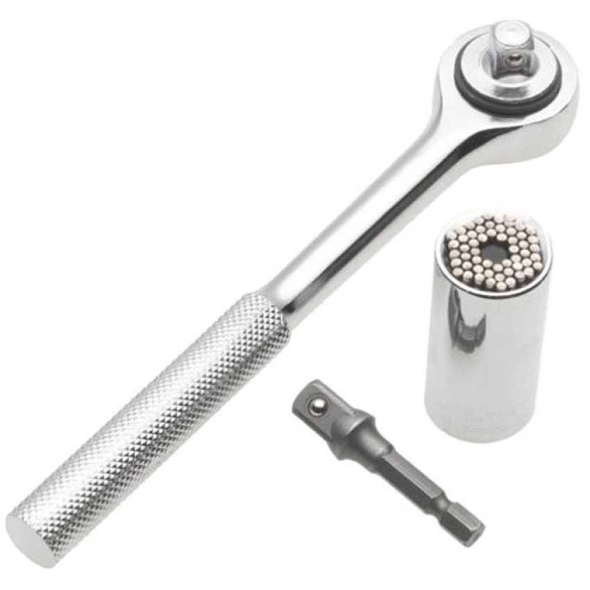 Socket ini dapat digunakan untuk baut dengan ukuran 7mm hingga 19mm. Kini Anda tidak perlu repot lagi membawa banyak jenis socket untuk masing-masing jenis baut.