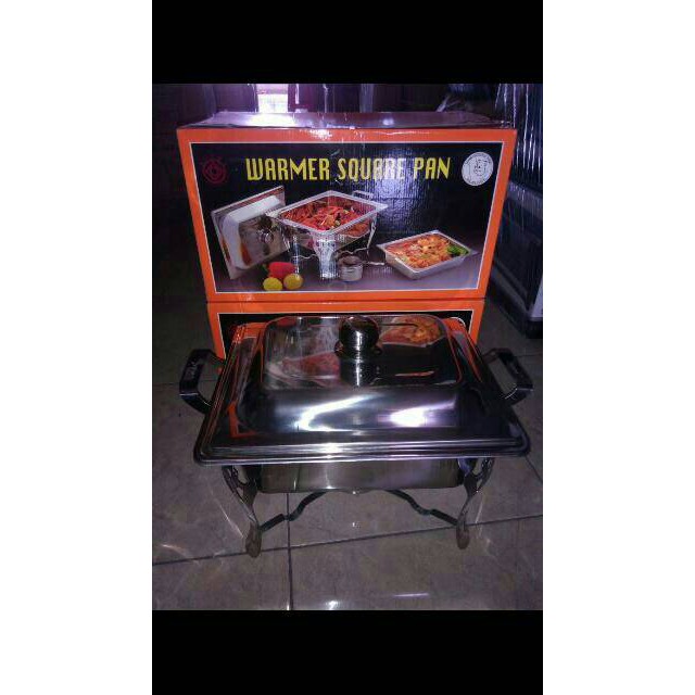 Supra warmer squer pemanas stainless steel, adalah alat pemanas makanan persegi yang terbuat dari bahan stainless steel kuat dan anti karat, pemanas supra tersebut sangat cocok untuk menyajikan makanan diberbagai keperluan pesta, arisan, resto, catering, dan pesta besar lainnya.